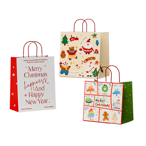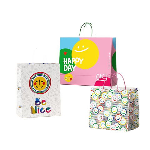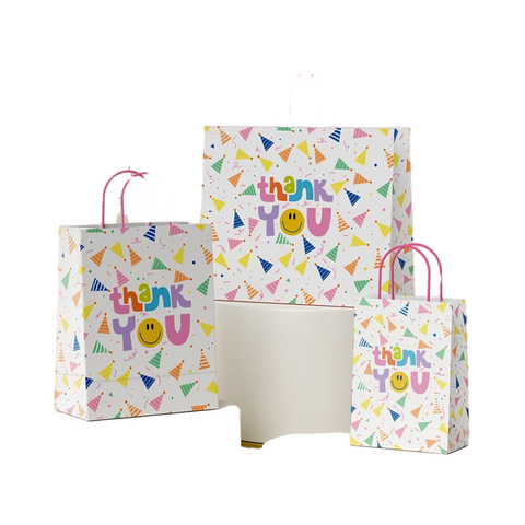 Bolsas de regalo de papel Kraft personalizadas de gama alta para niños Papel recubierto Embalaje de cumpleaños con Logo Juego de 3 piezas