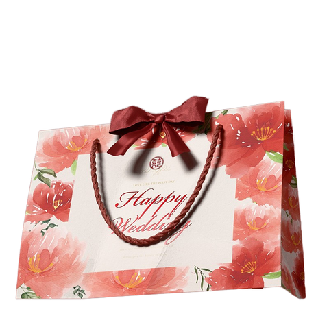 Embalaje de papel Kraft de recuerdo de boda de gama alta personalizable, bolsas de regalo de boda de cartón grueso con impresión de logotipo, 5 piezas