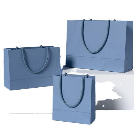 Bolso de regalo de tablero de marfil de gama alta personalizable para tiendas de ropa Salones de belleza Joyas 'Mist Blue' Logo Impreso Bolsas 5